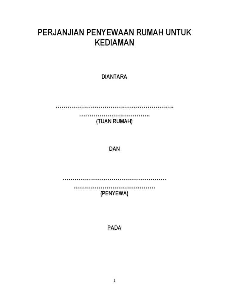 Perjanjian Penyewaan Rumah Untuk Kediaman Pdf